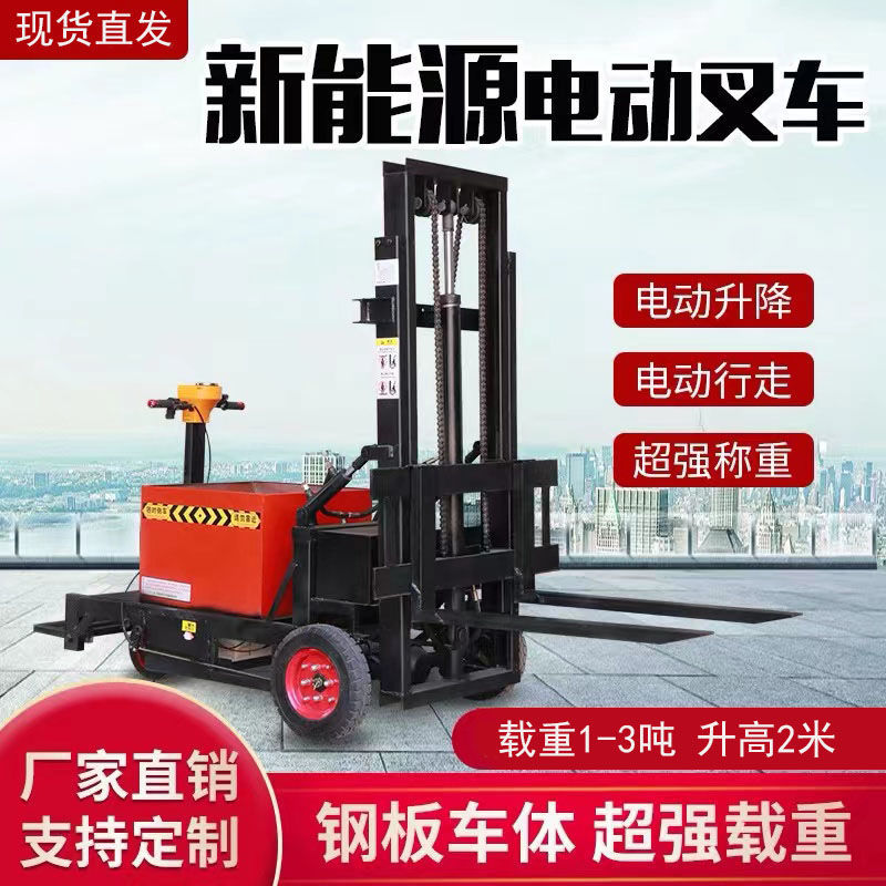 通辽市小型电动叉车1吨站驾式2吨液压升高铲车全自动仓储堆高车